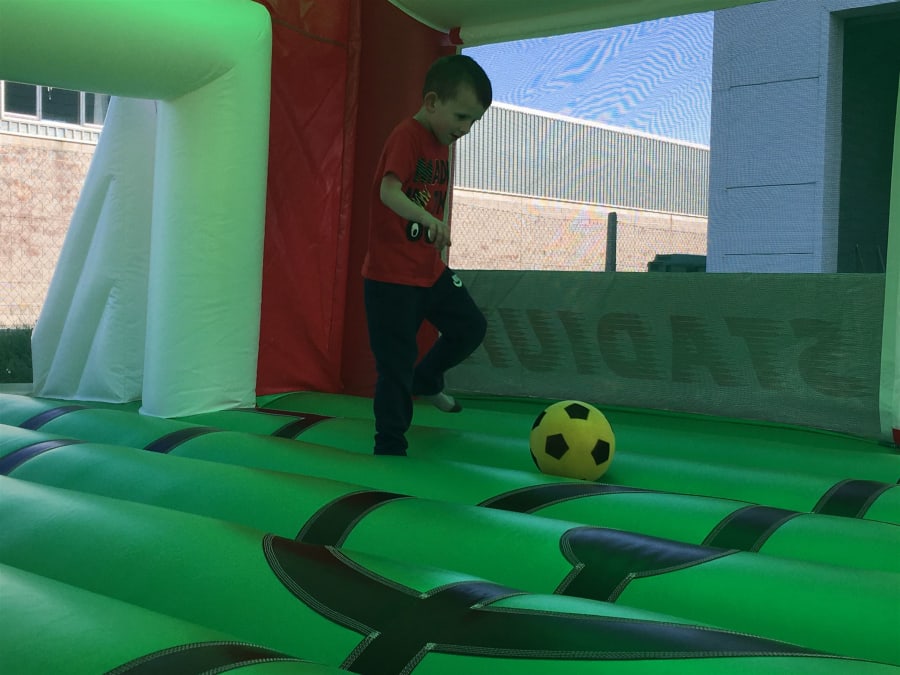 Our Soccor Stadium is really popular for boys birthday parties also works well as a neutral castle so girls do hire it also. Why not have a boys against girls tournament or even a mini football match. The soccor stadium is very popular all round. Prefect for communions days to any event